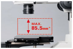 提供了一個長達85.5mm 行程,較高的工業樣品亦能輕易地被觀察。