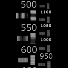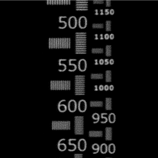 Comparison of resolution and color aberration by resolution chart