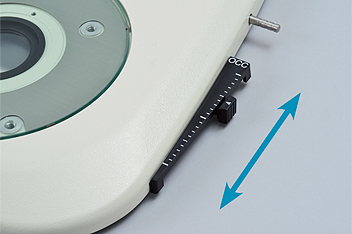 The OCC illuminator can be controlled using a slide lever. Thanks to scales on the slide lever, the user can save and reproduce desired illumination levels. In addition, an OCC plate can be inserted into the illumination unit from the front and rear sides, so images with different shadow direction can be observed.